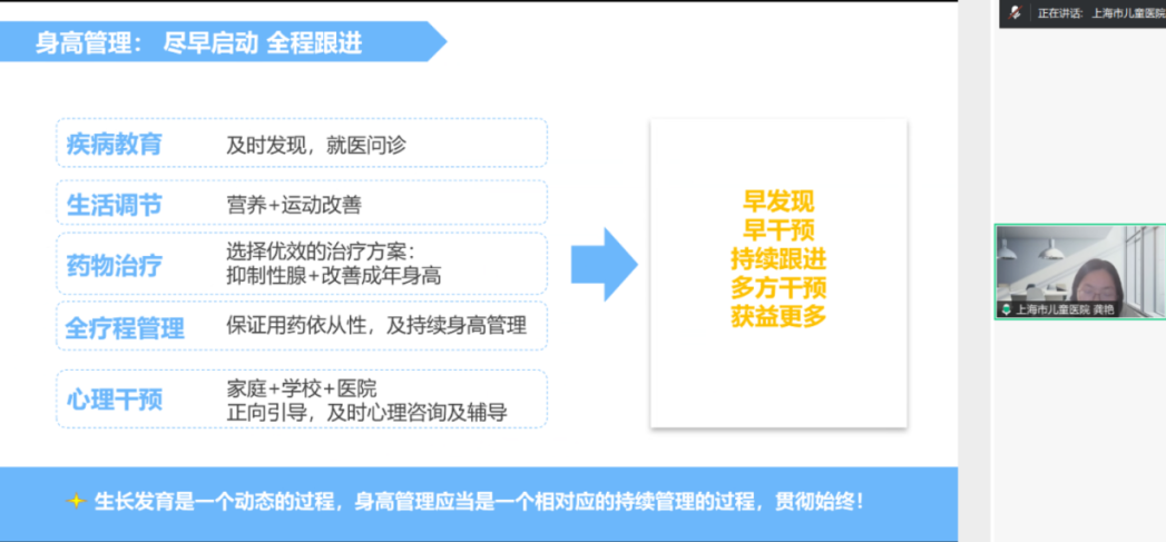 本场讲座围绕青春期性发育与身高这一家长及医学同道高度关注的主题,从正常发育规律讲到早发育评估,再到治疗与预防,形成完整的知识体系。龚艳医生结合临床经验与专业数据,将复杂的医学概念转化为通俗易懂的表述,同时针对家长常见的疑问给出了具体且实用的指导。讲座内容紧密贴合当下儿童发育现状,对家长及早发现孩子发育异常、科学管理身高具有重要的指导意义。