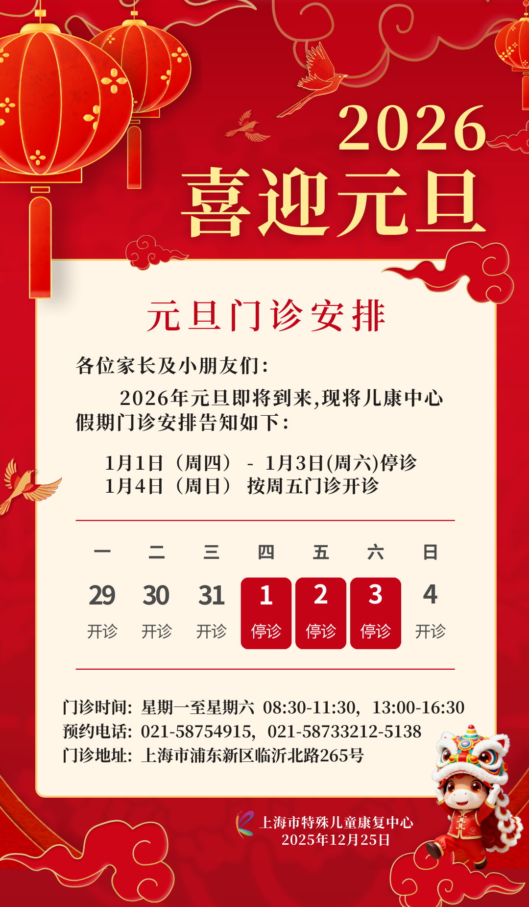 2026年元旦假期门诊安排