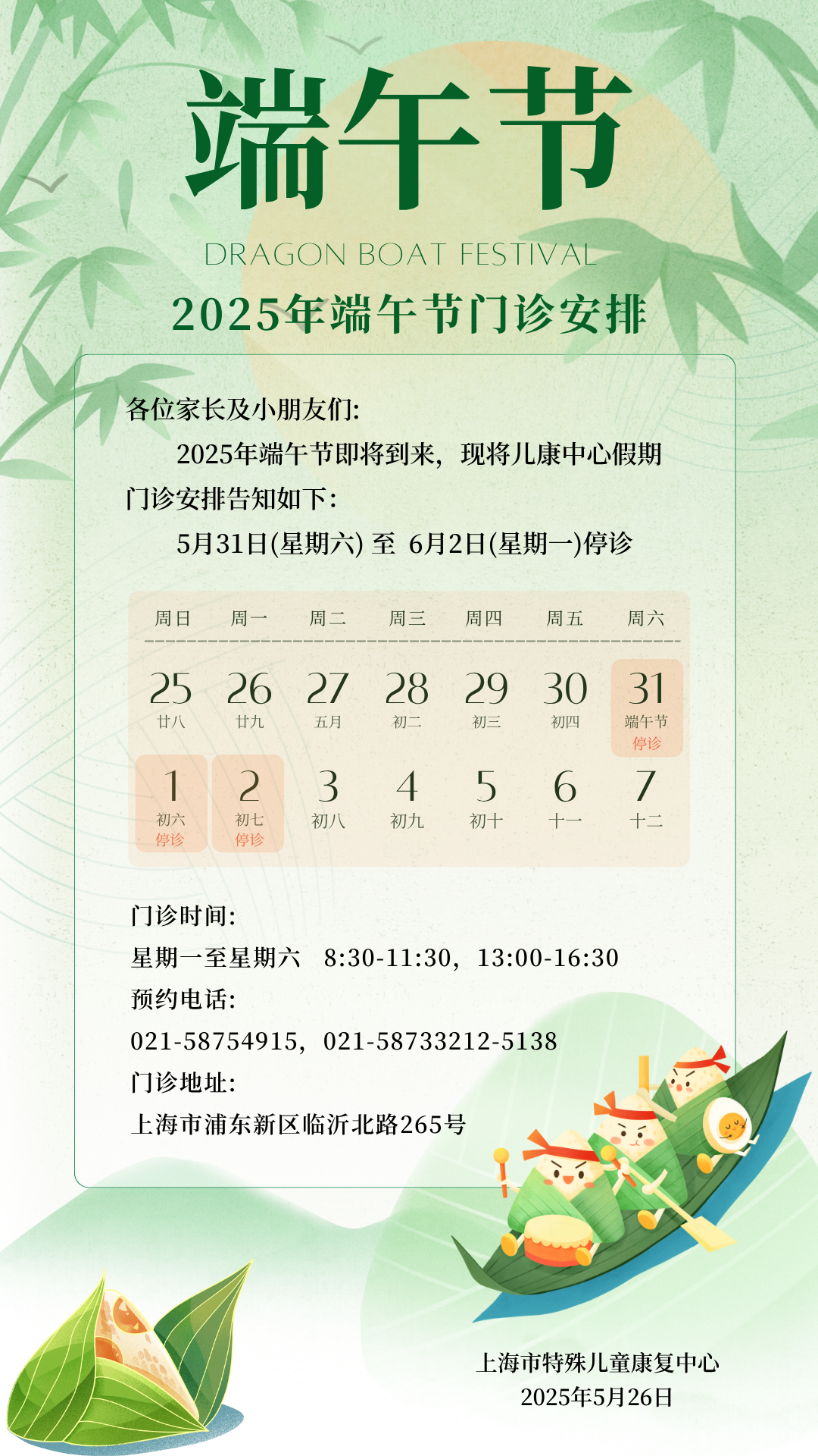 2025年端午假期门诊安排
